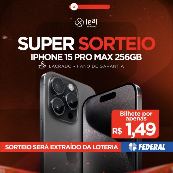 PRÊMIO - IPHONE 15 PRO MAX 256GB OU R$6.000 NO PIX💰